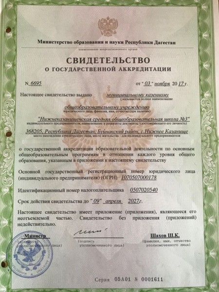 Полное наименование образовательной организации* Муниципальное бюджетное общеобразовательное учреждение "Нижнеказанищенская средняя общеобразовательная школа №3"